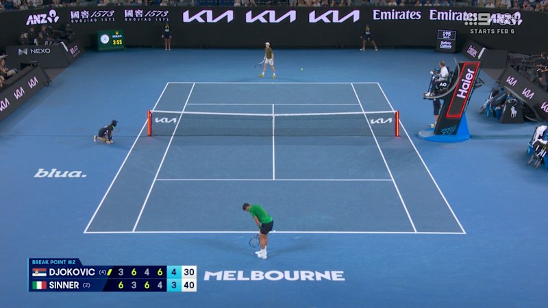 Video: Novak pants after saving three break points